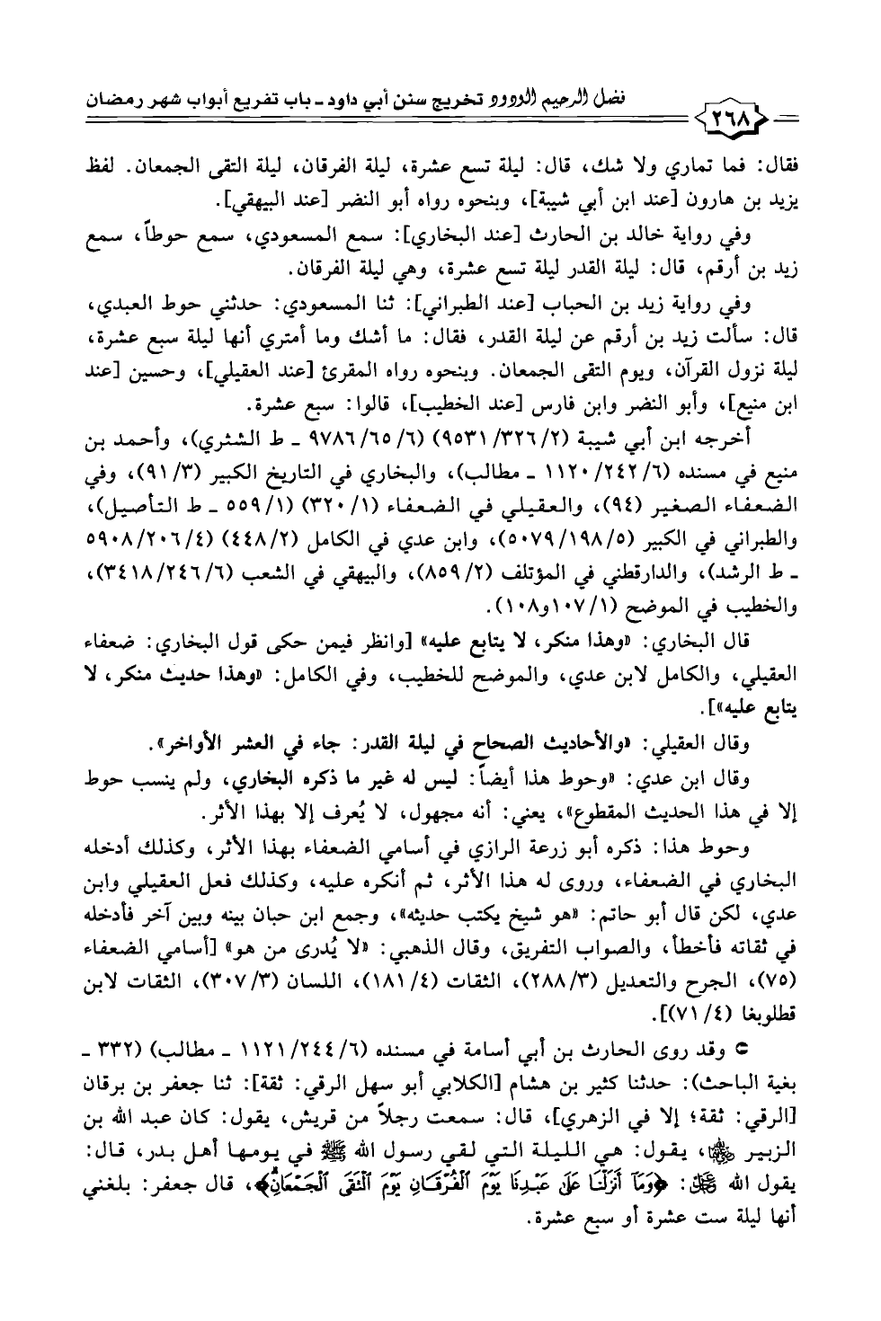 وقال العقيلي: "والأحاديث الصحاح في ليلة القدر: جاء في العشر الأواخر".