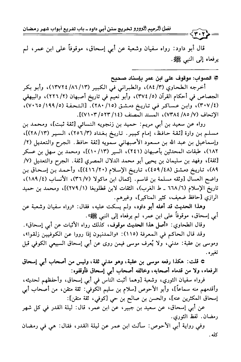 قال أبو داود: رواه سفيان وشعبة عن أبي إسحاق، موقوفاً على ابن عمر، لم يرفعاه إلى النبي - صلى الله عليه وسلم -.