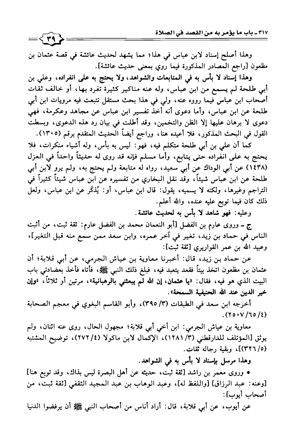 وهذا أصلح إسناد لابن عباس في هذا؛ مما يشهد لحديث عائشة في قصة عثمان بن مظعون [راجع المصادر المذكورة فيما روي بمعنى حديث عائشة].