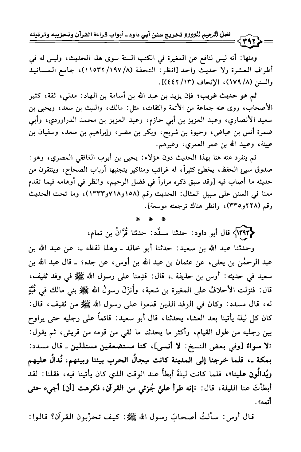 ١٣٩٣ - قال أبو داود: حدثنا مسدَّد: حدثنا قُرَّانُ بن تمام،