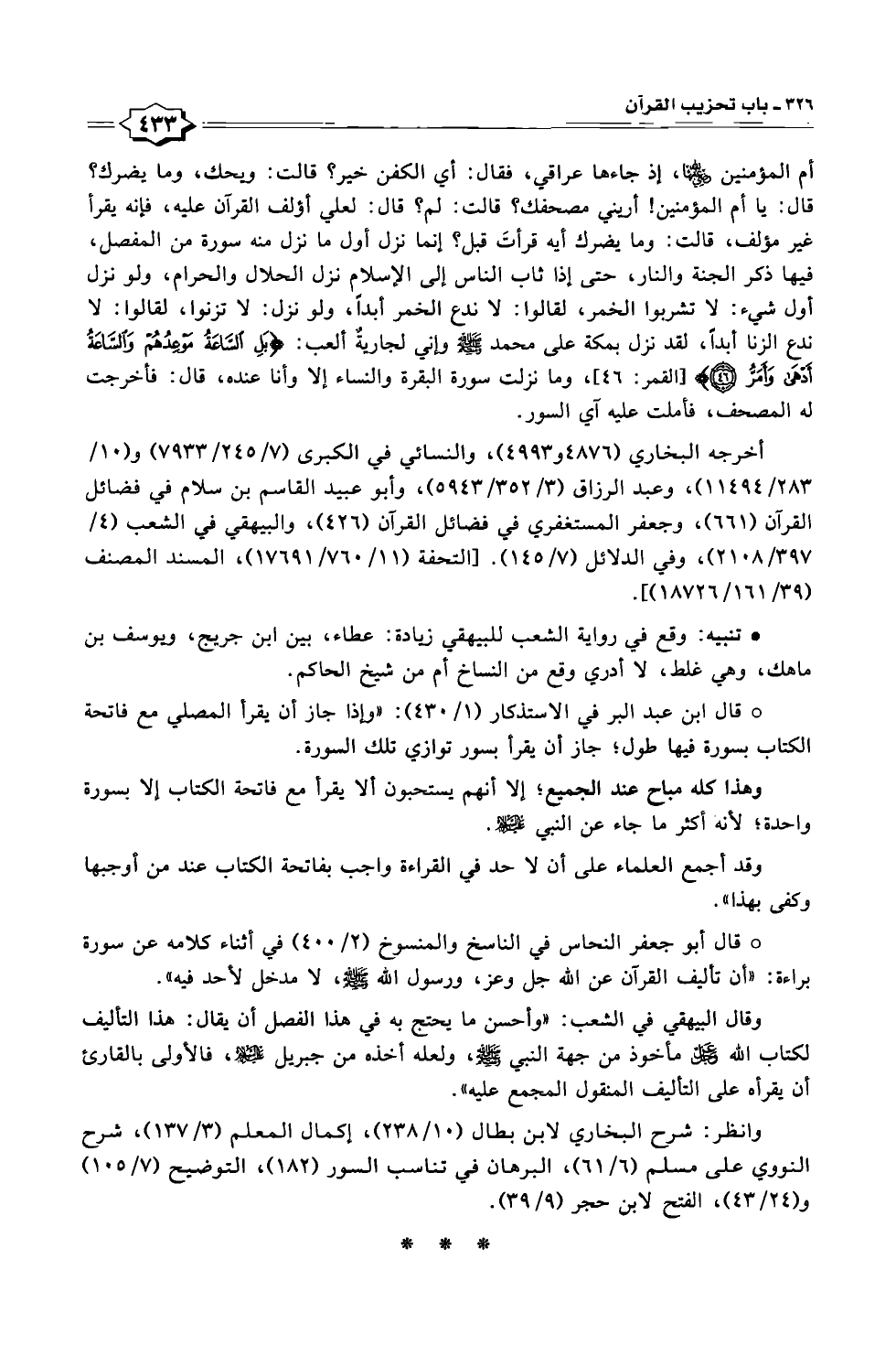 وانظر: شرح البخاري لابن بطال (١٠/ ٢٣٨)، إكمال المعلم (٣/ ١٣٧)، شرح النووي على مسلم (٦/ ٦١)، البرهان في تناسب السور (١٨٢)، التوضيح (٧/ ١٠٥) و (٢٤/ ٤٣)، الفتح لابن حجر (٩/ ٣٩).