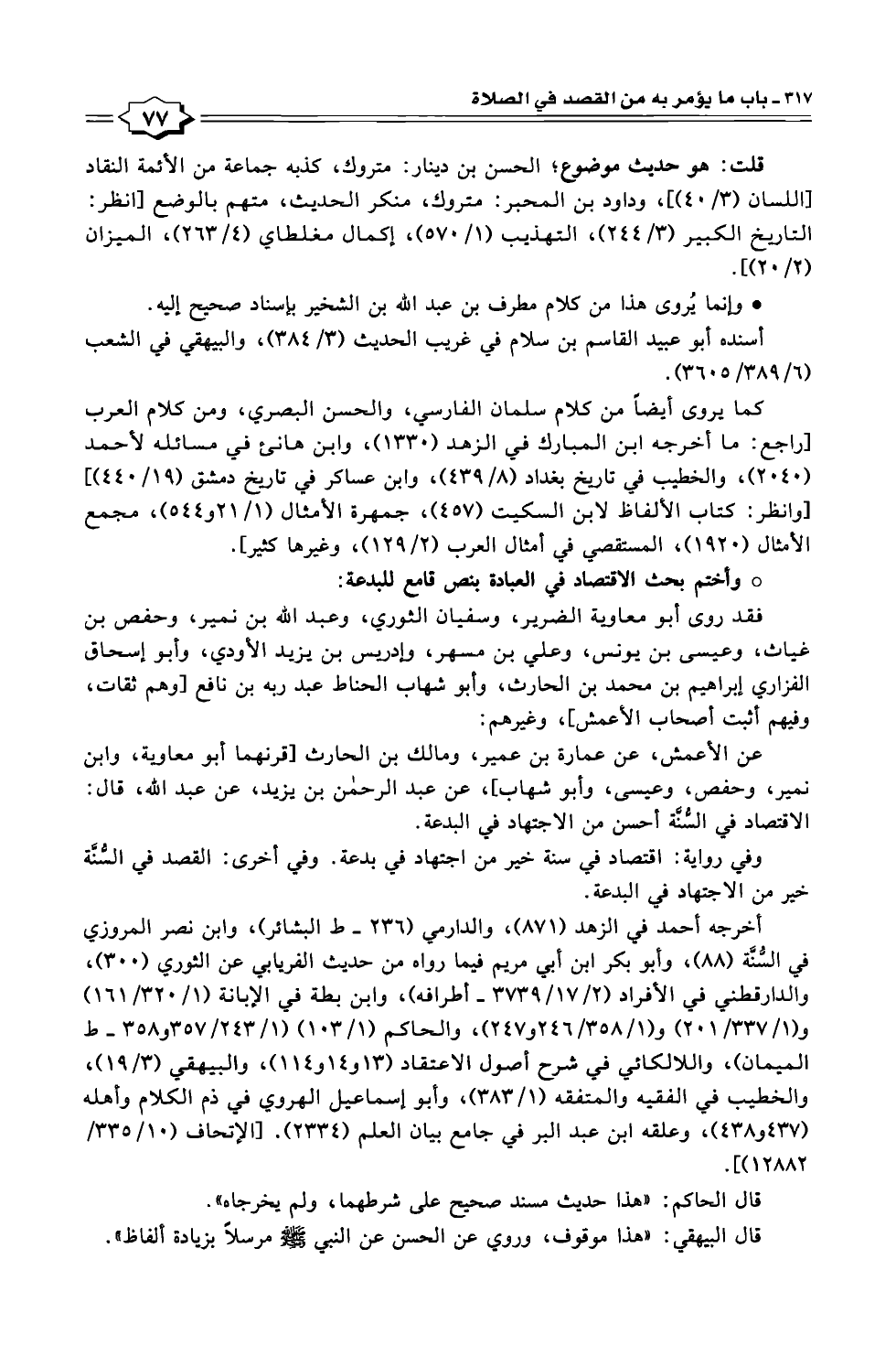 عن الأعمش، عن عمارة بن عمير، ومالك بن الحارث [قرنهما أبو معاوية، وابن نمير، وحفص، وعيسى، وأبو شهاب]، عن عبد الرحمن بن يزيد، عن عبد الله، قال: الاقتصاد في السُّنَّة أحسن من الاجتهاد في البدعة.