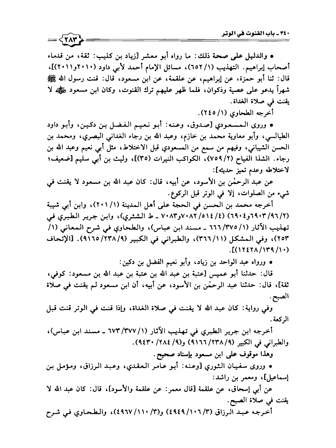 قال: حدثنا أبو عميس [عتبة بن عبد الله بن عتبة بن عبد الله بن مسعود: كوفي، ثقة]، قال: حدثنا عبد الرحمن بن الأسود، عن أبيه، أن ابن مسعود لم يقنت في صلاة الصبح.