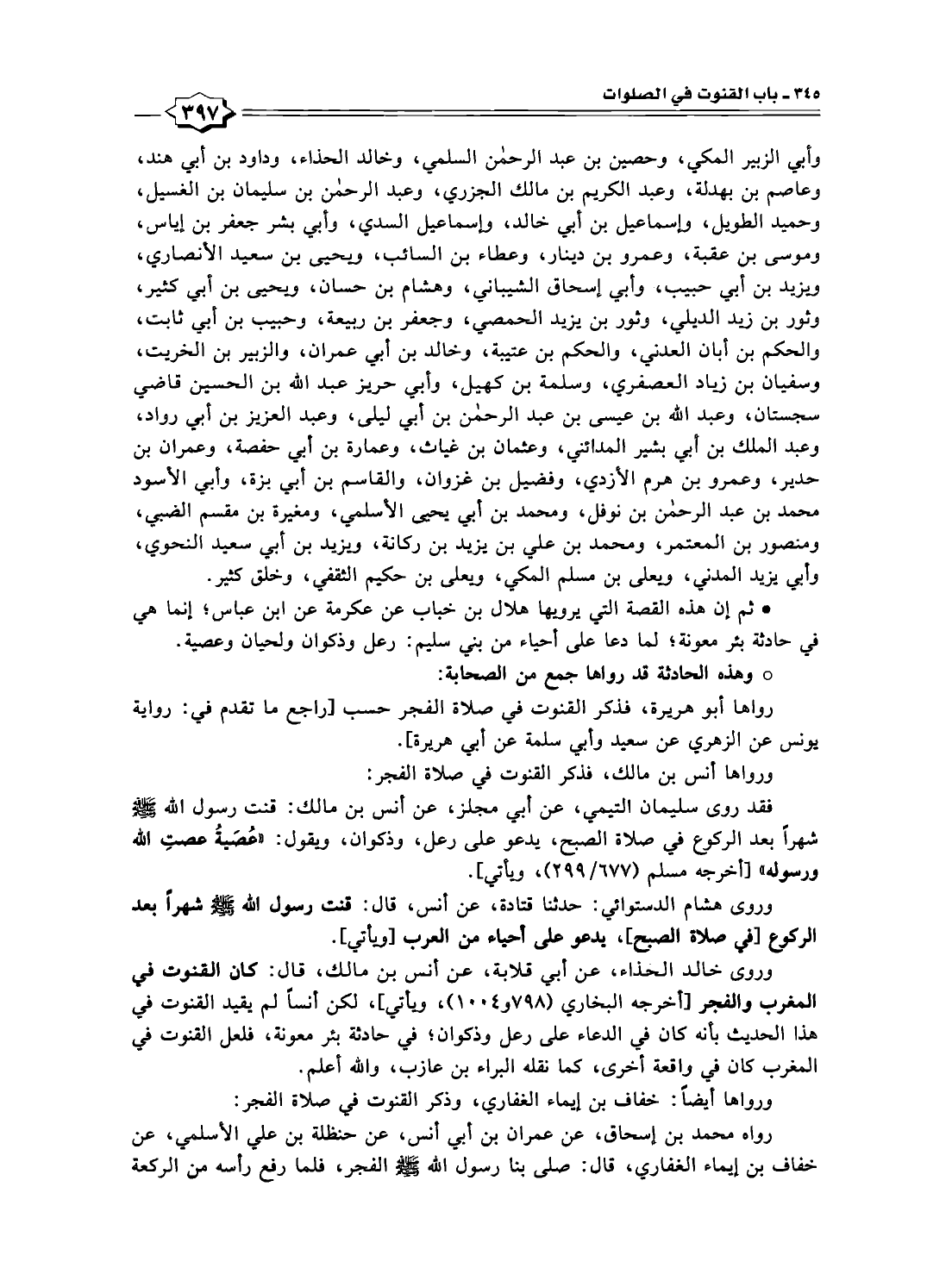 وروى خالد الحذاء، عن أبي قلابة، عن أنس بن مالك، قال: كان القنوت في المغرب والفجر [أخرجه البخاري (٧٩٨ و ١٠٠٤)، ويأتي]، لكن أنسًا لم يقيد القنوت في هذا الحديث بأنه كان في الدعاء على رعل وذكوان؛ في حادثة بئر معونة، فلعل القنوت في المغرب كان في واقعة أخرى، كما نقله البراء بن عازب، والله أعلم.
