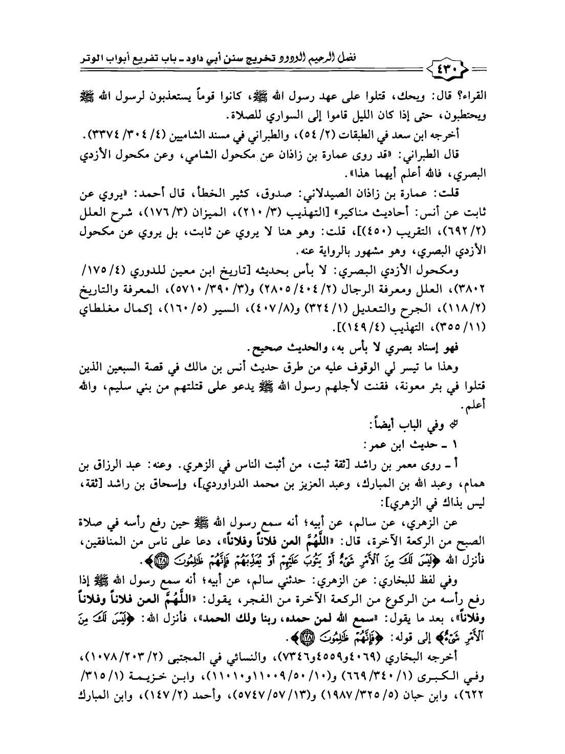 أخرجه البخاري (٤٠٦٩ و ٤٥٥٩ و ٧٣٤٦)، والنسائي في المجتبى (٢/ ٢٠٣/ ١٠٧٨)، وفي الكبرى (١/ ٣٤٠/ ٦٦٩) و (١٠/ ٥٠/ ١١٠٠٩ و ١١٠١٠)، وابن خزيمة (١/ ٣١٥/ ٦٢٢)، وابن حبان (٥/ ٣٢٥/ ١٩٨٧) و (١٣/ ٥٧/ ٥٧٤٧)، وأحمد (٢/ ١٤٧)، وابن المبارك