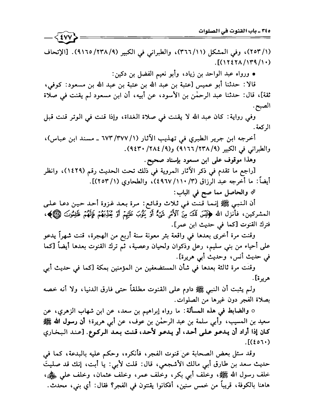 ولم يثبت أن النَّبِيّ - صلى الله عليه وسلم - داوم على القنوت مطلقًا حتى فارق الدنيا، ولا أنه خصه بصلاة الفجر دون غيرها من الصلوات.
