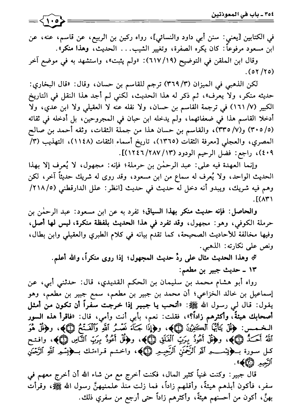 ١٣ - حديث جبير بن مطعم: