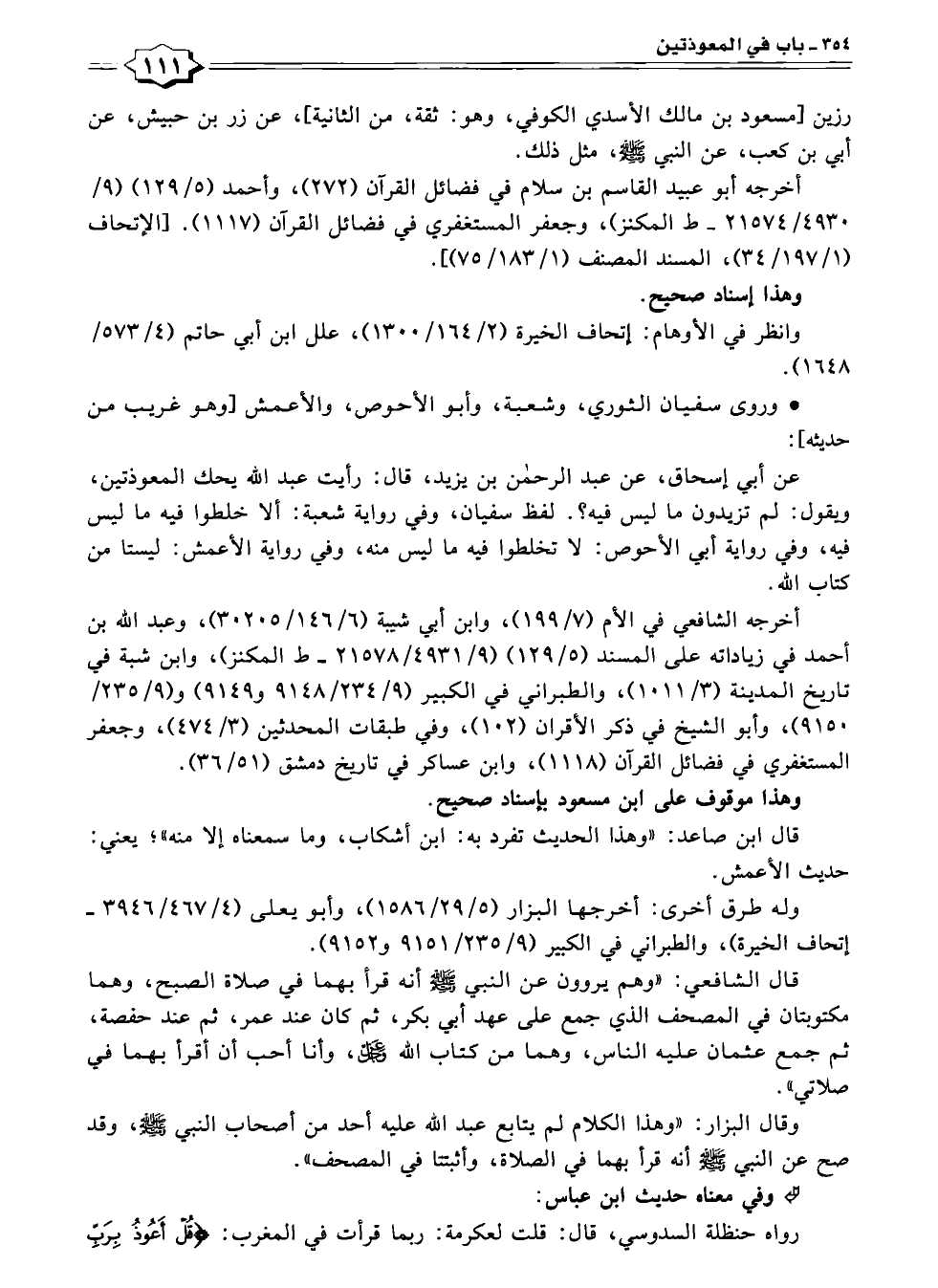 وقال البزار: "وهذا الكلام لم يتابع عبد الله عليه أحد من أصحاب النبي -صلى الله عليه وسلم-، وقد صح عن النبي -صلى الله عليه وسلم- أنه قرأ بهما في الصلاة، وأثبتتا في المصحف".