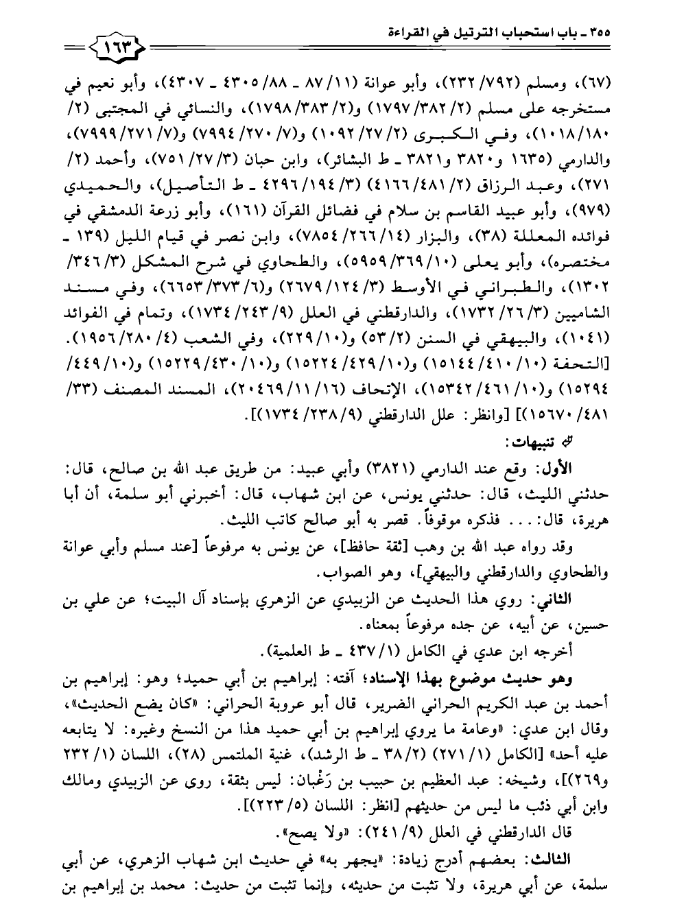 ٦٧ - ، ومسلم (٧٩٢/ ٢٣٢)، وأبو عوانة (١١/ ٨٧ - ٨٨/ ٤٣٠٥ - ٤٣٠٧)، وأبو نعيم في مستخرجه على مسلم (٢/ ٧٩٧/ ١٣٨٢) و (٢/ ٣٨٣/ ١٧٩٨)، والنسائي في المجتبى (٢/ ١٨٠/ ١٠١٨)، وفي الكبرى (٢/ ٢٧ / ١٠٩٢) و (٧/ ٢٧٠/ ٧٩٩٤) و (٧/ ٧٩٩٩/٢٧١)، والدارمي (١٦٣٥ و ٣٨٢٠ و ٣٨٢١ - ط البشائر)، وابن حبان (٣/ ٢٧/ ٧٥١)، وأحمد (٢/ ٢٧١)، وعبد الرزاق (٢/ ٤٨١/ ٤١٦٦) (٣/ ١٩٤/ ٤٢٩٦ - ط التأصيل)، والحميدي (٩٧٩)، وأبو عبيد القاسم بن سلام في فضائل القرآن (١٦١)، وأبو زرعة الدمشقي في فوائده المعللة (٣٨)، والبزار (١٤/ ٢٦٦/ ٧٨٥٤)، وابن نصر في قيام الليل (١٣٩ - مختصره)، وأبو يعلى (١٠/ ٣٦٩/ ٥٩٥٩)، والطحاوي في شرح المشكل (٣/ ٣٤٦/ ١٣٠٢)، والطبراني في الأوسط (٣/ ١٢٤/ ٢٦٧٩) و (٦/ ٣٧٣/ ٦٦٥٣)، وفي مسند الشاميين (٣/ ٢٦/ ١٧٣٢)، والدارقطني في العلل (٩/ ٢٤٣/ ١٧٣٤)، وتمام في الفوائد (١٠٤١)، والبيهقي في السنن (٢/ ٥٣) و (١٠/ ٢٢٩)، وفي الشعب (٤/ ٢٨٠/ ١٩٥٦). [التحفة (١٠/ ٤١٠/ ١٥١٤٤) و (١٠/ ٤٢٩/ ١٥٢٢٤) و (١٠/ ٤٣٠/ ١٥٢٢٩) و (١٠/ ٤٤٩/ ١٥٢٩٤) و (١٠/ ٤٦١/ ١٥٣٤٢)، الإتحاف (١٦/ ١١/ ٢٠٤٦٩)، المسند المصنف (٣٣/ ٤٨١/ ١٥٦٧٠)، [وانظر: علل الدارقطني (٩/ ٢٣٨/ ١٧٣٤)].