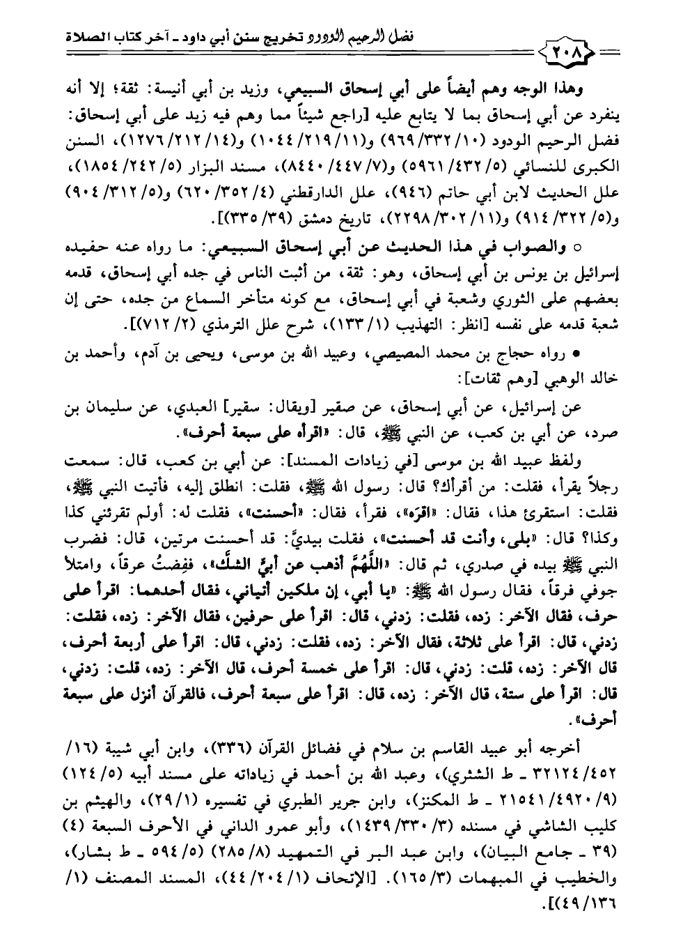 عن إسرائيل، عن أبي إسحاق، عن صقير [ويقال: سقير] العبدي، عن سليمان بن صرد، عن أبي بن كعب، عن النبي - صلى الله عليه وسلم -، قال: "اقرأه على سبعة أحرف".