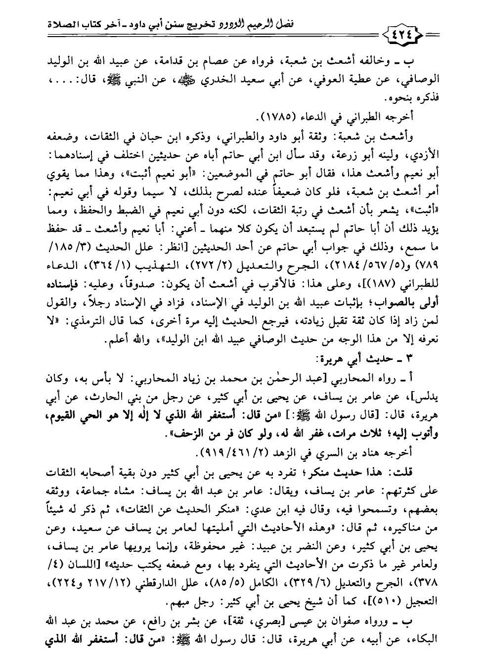 ب - ورواه صفوان بن عيسى [بصري، ثقة]، عن بشر بن رافع، عن محمد بن عبد الله البكاء، عن أبيه، عن أبي هريرة، قال: قال رسول الله - صلى الله عليه وسلم -: "من قال: أستغفر الله الذي