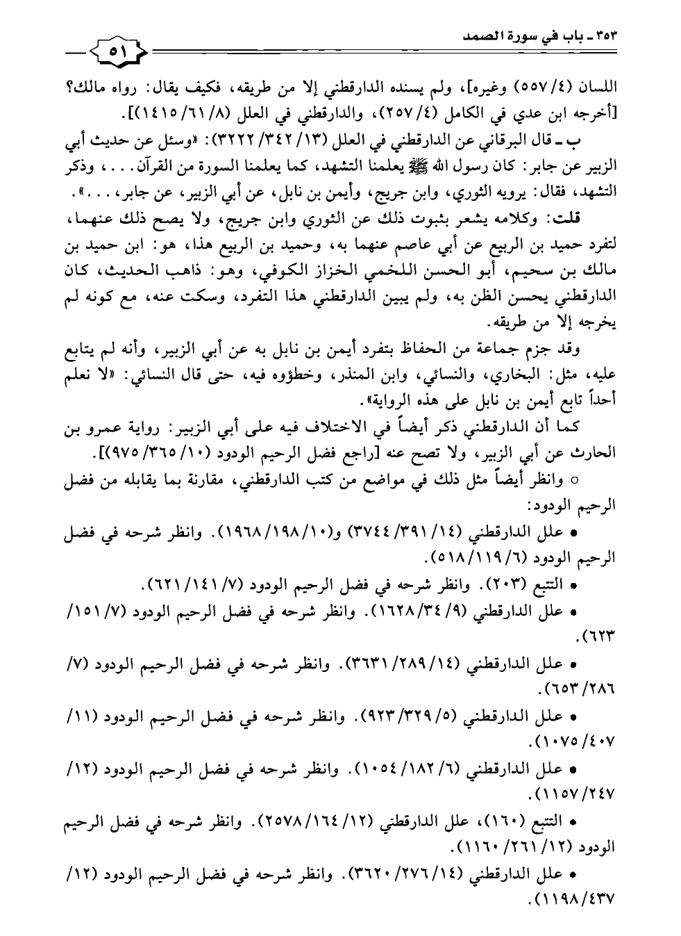* علل الدارقطني (١٤/ ٣٩١/ ٣٧٤٤) و (١٠/ ١٩٨/ ١٩٦٨). وانظر شرحه في فضل الرحيم الودود (٦/ ١١٩/ ٥١٨).