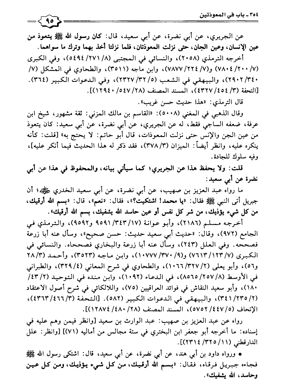 أخرجه مسلم (٢١٨٦)، وأبو عوانة (١٧/ ٣٤٣/ ٩٥٩١ و ٩٥٩٢)، والترمذي في الجامع (٩٧٢)، وقال: "حديث أبي سعيد حديث: حسن صحيح"، وسأل عنه أبا زرعة فصححه. وفي العلل (٢٤٣)، وسأل عنه أبا زرعة والبخاري فصححاه. والنسائي في الكبرى (٧/ ١٢٣/ ٧٦١٣) و (٩/ ٣٧٠/ ١٠٧٧٧)، وابن ماجه (٣٥٢٣)، وأحمد (٣/ ٢٨ و ٥٦)، وأبو يعلى (٢/ ٣٢٧/ ١٠٦٦)، والطحاوي في شرح المعاني (٤/ ٣٢٩)، والطبراني في الأوسط (٨/ ٢٥٧/ ٨٥٦٥)، في الدعاء (١٠٩٢)، وابن منده في التوحيد (٢/ ٤٣/ ١٨٥)، وأبو سعيد النقاش في فوائد العراقيين (٧٥)، واللالكائي في شرح أصول الاعتقاد (٢/ ٢٣٥/ ٣٤١)، والبيهقي في الدعوات الكبير (٥٨٢). [التحفة (٣/ ٤٦٦/ ٤٣٦٣)، الإتحاف (٥/ ٤٤٧/ ٥٧٥٢)، المسند المصنف (٢٨/ ٤٨٠/ ١٢٨٧٤)].