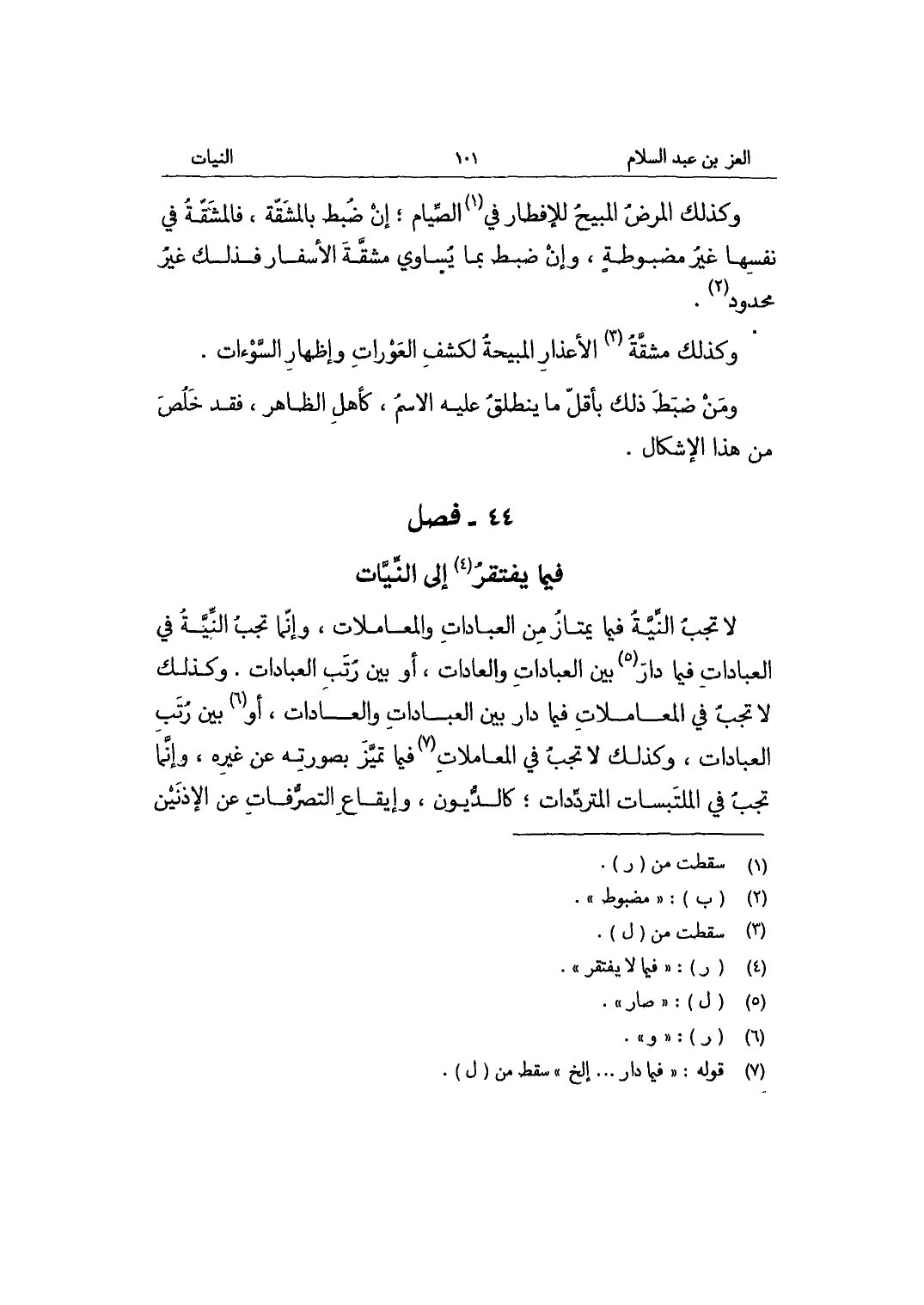 فصل فِيمَا يفْتَقر إِلَى النيات