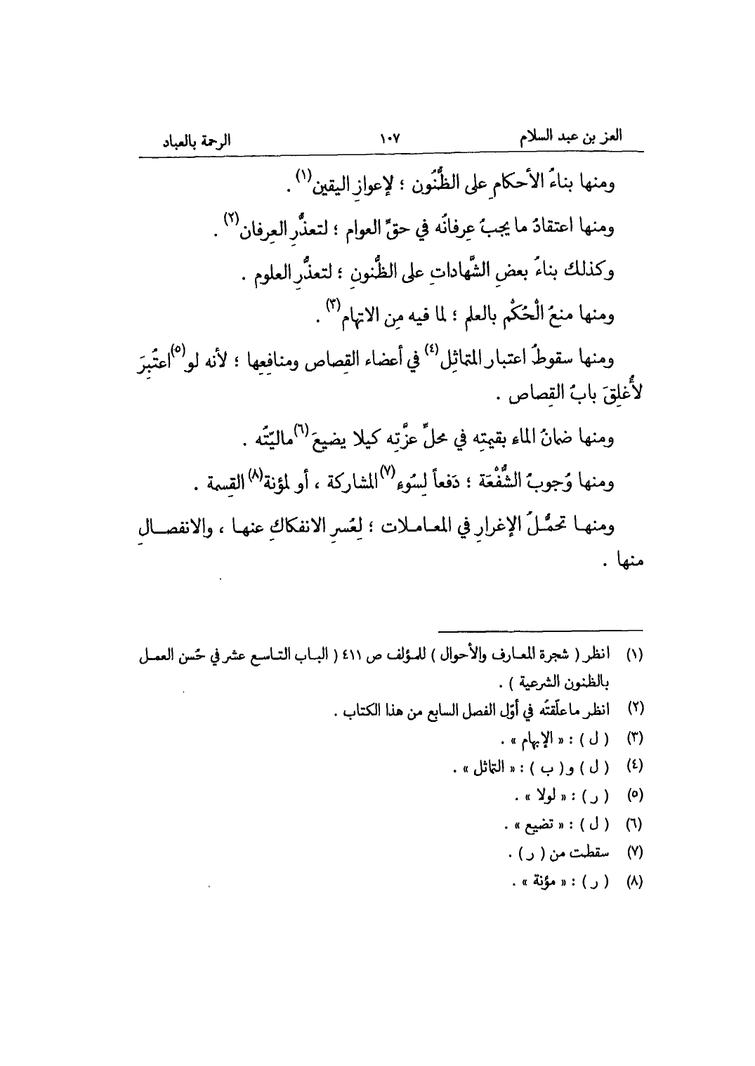 وَمِنْهَا بِنَاء الْأَحْكَام على الظنون لإعواز الْيَقِين