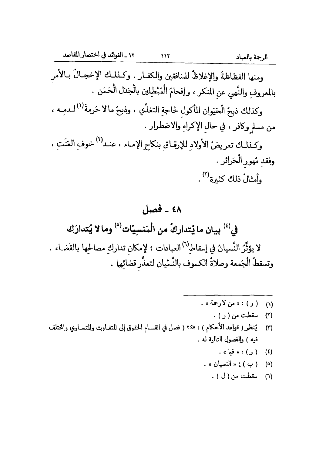 فصل فِي بَيَان مَا يتدارك من المنسيات وَمَا لَا يتدارك