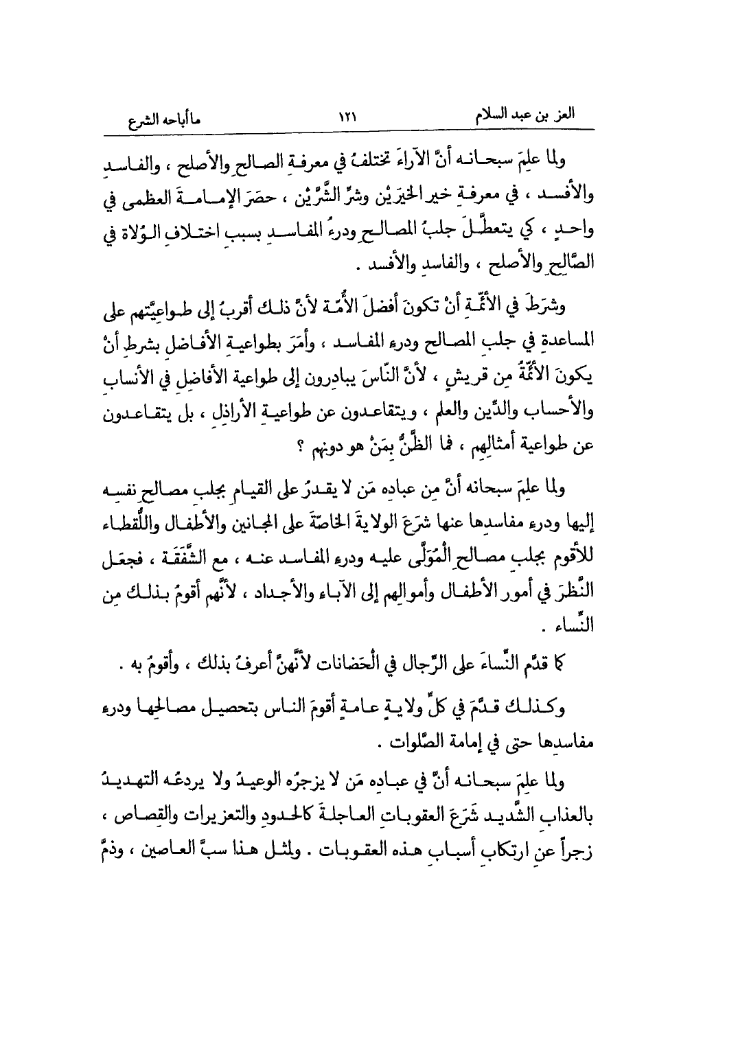 وَلما علم سُبْحَانَهُ أَن الآراء تخْتَلف فِي معرفَة الصَّالح والأصلح وَالْفَاسِد والأفسد فِي معرفَة خير الخيرين وَشر الشرين حصر الْإِمَامَة الْعُظْمَى فِي وَاحِد كي يتعطل جلب الْمصَالح ودرء الْمَفَاسِد بِسَبَب اخْتِلَاف الْوُلَاة فِي الصَّالح والأصلح وَالْفَاسِد والأفسد