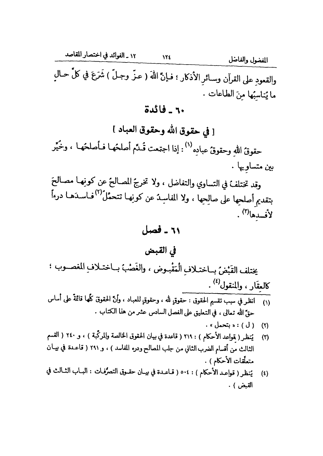 فَائِدَة فِي حُقُوق الله وَحُقُوق الْعباد