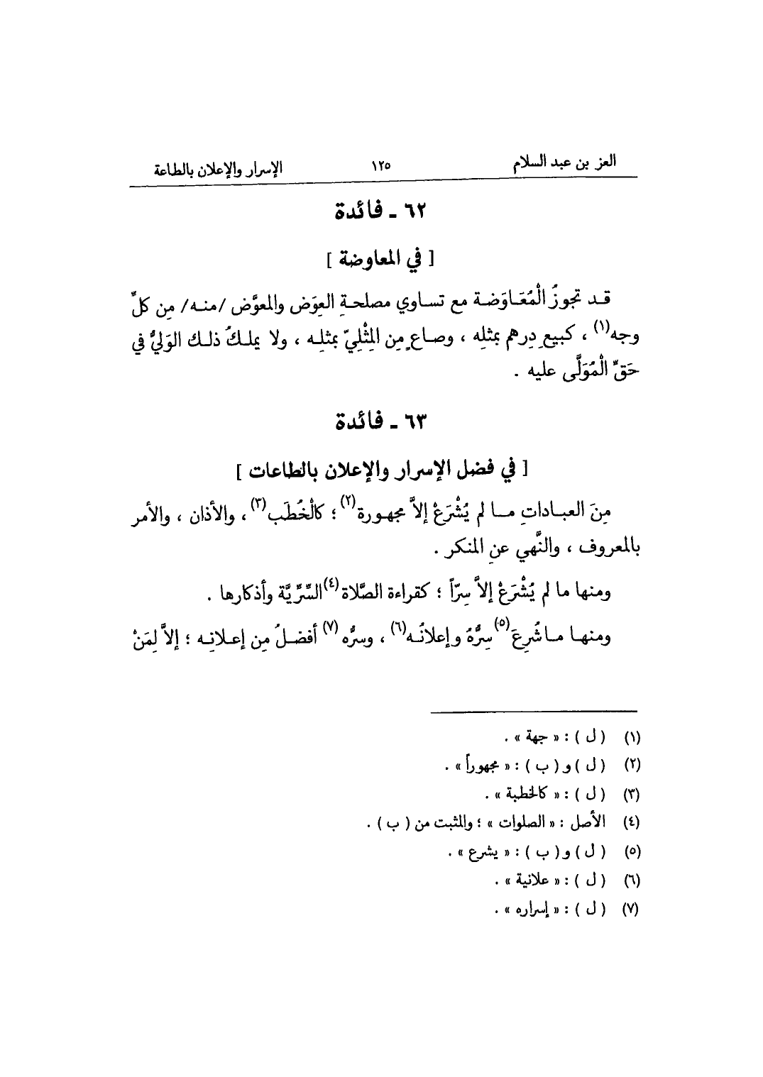 فَائِدَة فِي فضل الْإِسْرَار والإعلان بالطاعات