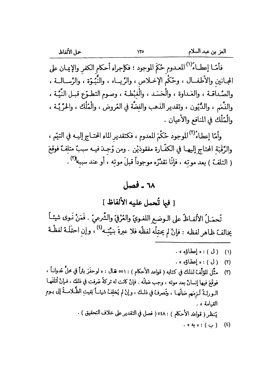 فصل فِيمَا تحمل عَلَيْهِ الْأَلْفَاظ