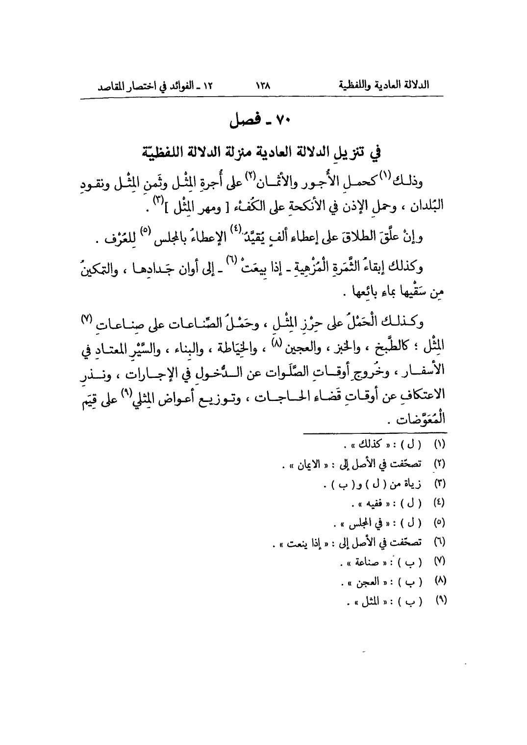 فصل فِي تَنْزِيل الدّلَالَة العادية منزلَة الدّلَالَة اللفظية