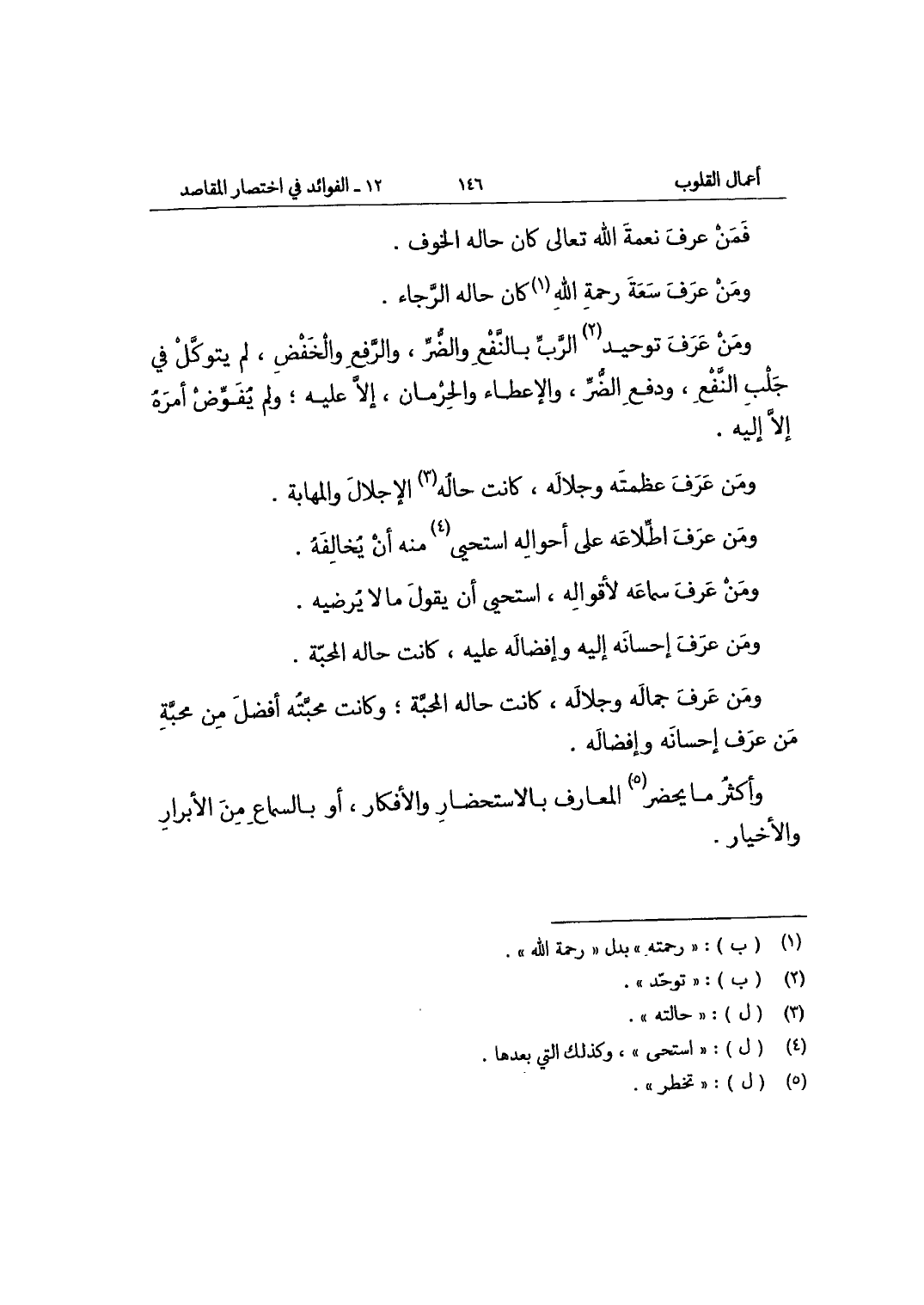 وَمن عرف جماله وجلاله كَانَت حَاله الْمحبَّة وَكَانَت محبته أفضل من محبَّة من عرف إحسانه وإفضاله