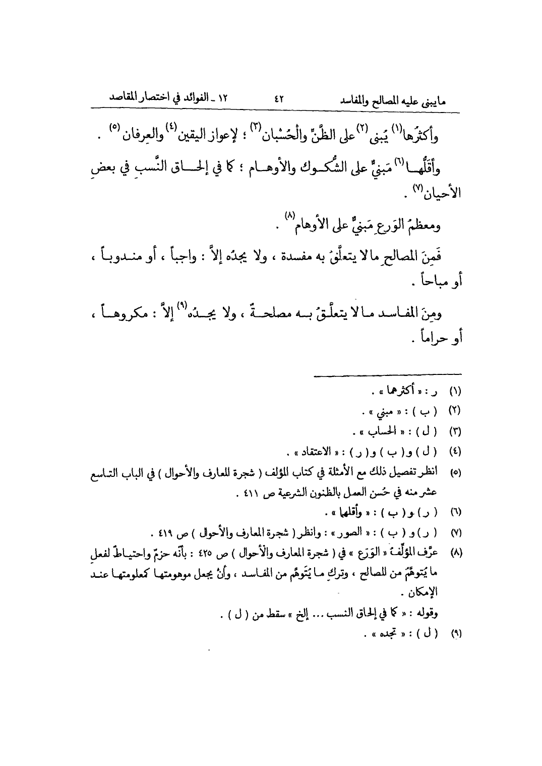 ومعظم الْوَرع مَبْنِيّ على الأوهام
