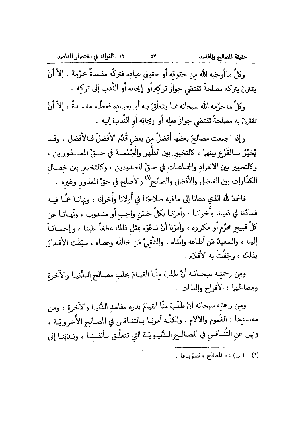وَمن رَحمته سُبْحَانَهُ أَن طلب منا الْقيام بدرء مفاسد الدُّنْيَا وَالْآخِرَة وَمن مفاسدها الغموم والآلام وَلكنه أمرنَا بالتنافس فِي الْمصَالح الأخروية وَنهى عَن التنافس فِي الْمصَالح الدُّنْيَوِيَّة الَّتِي تتَعَلَّق بِأَنْفُسِنَا وندبنا إِلَى