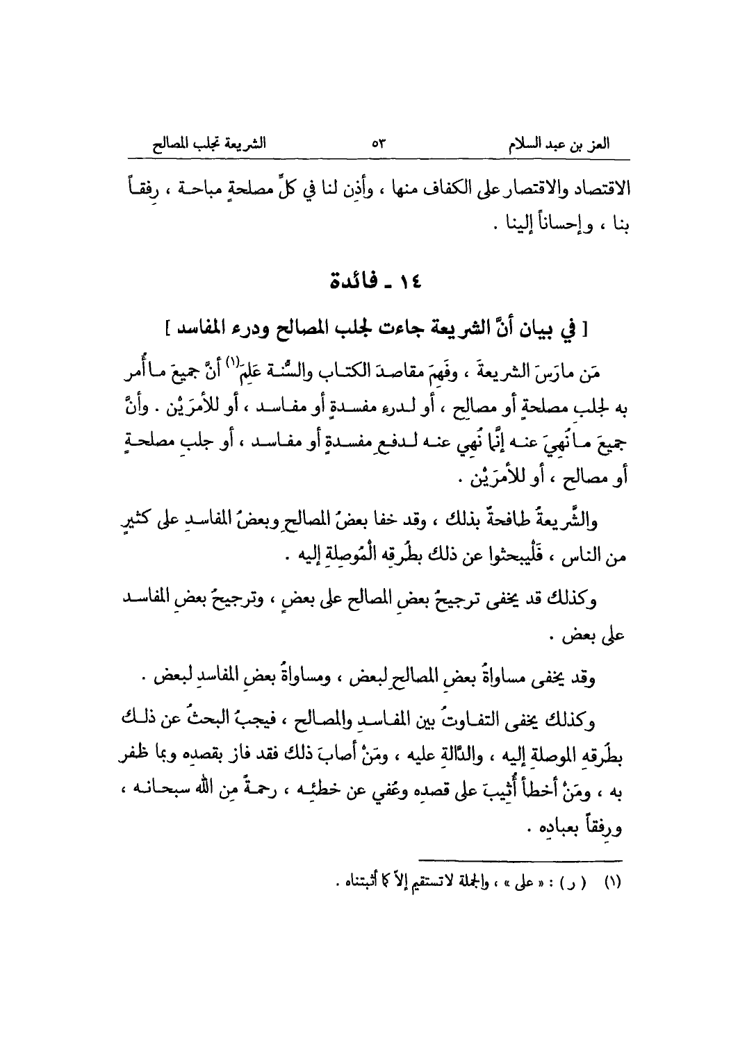 فَائِدَة فِي بَيَان أَن الشَّرِيعَة جَاءَت لجلب الْمصَالح ودرء الْمَفَاسِد