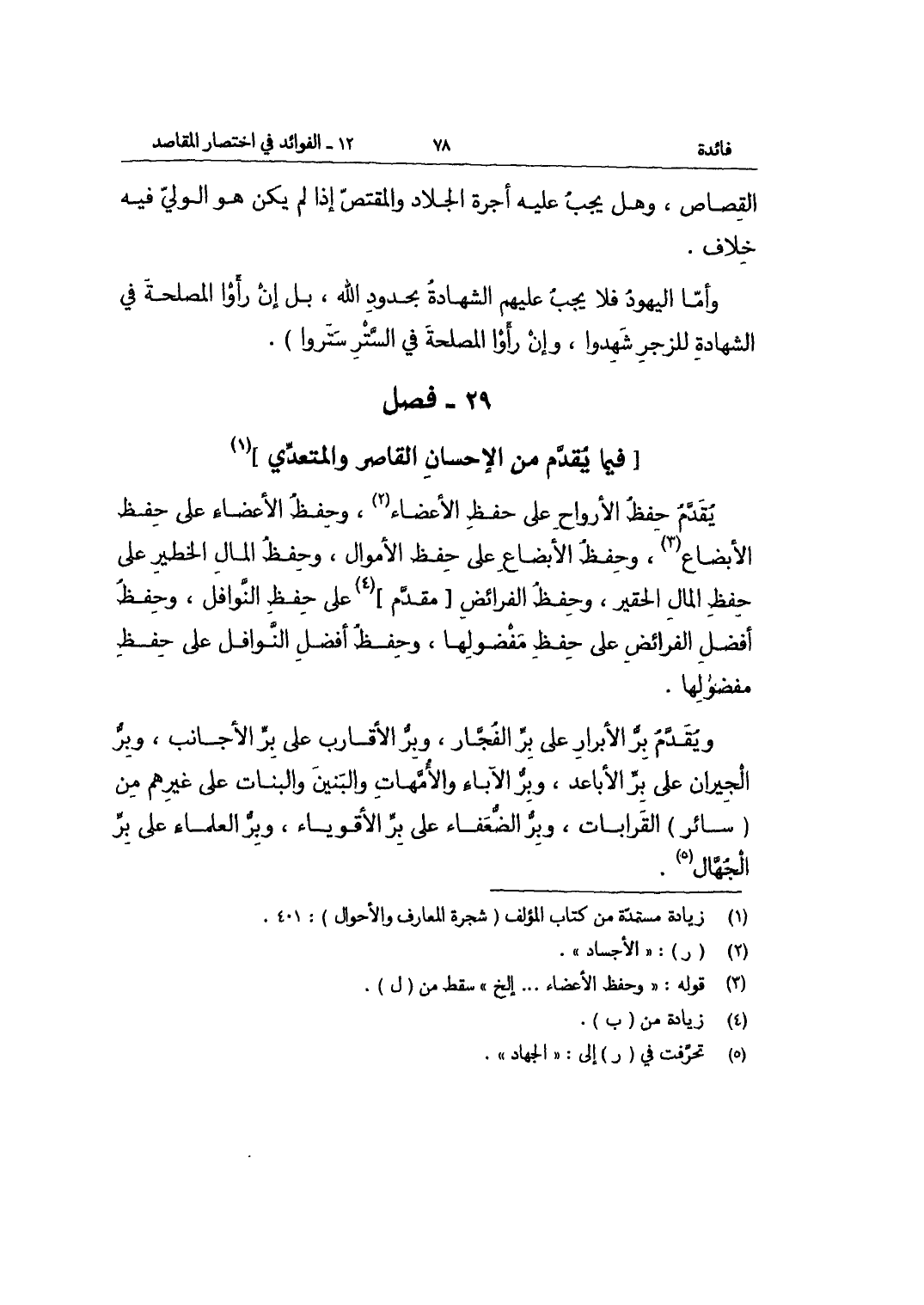 فصل فِيمَا يقدم من الْإِحْسَان الْقَاصِر والمتعدي