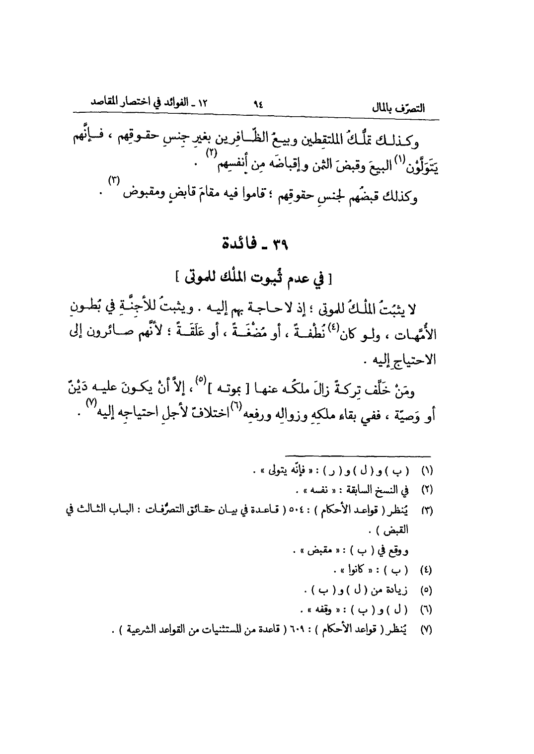 فَائِدَة فِي عدم ثُبُوت الْملك للموتى