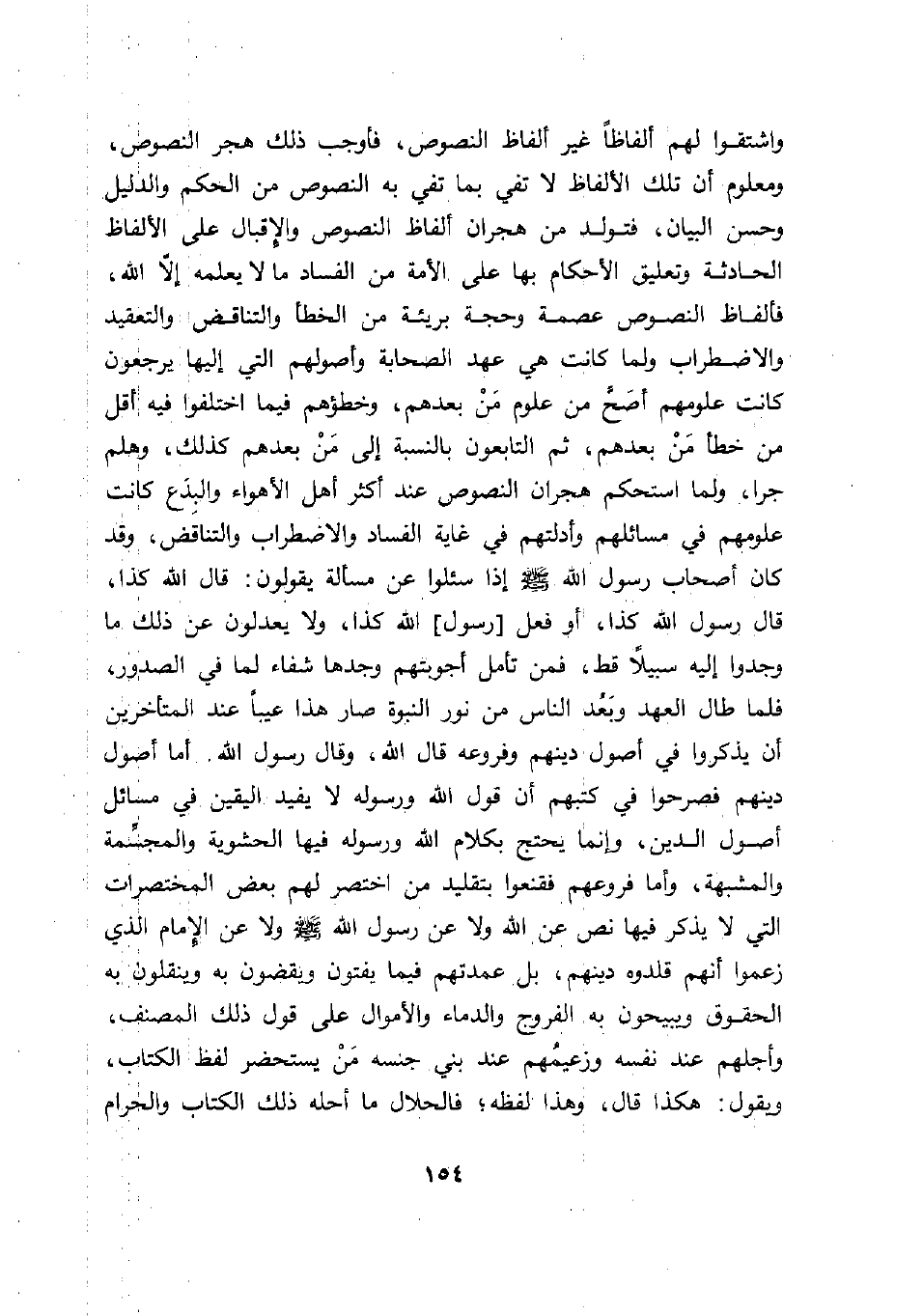 واشتقوا لهم ألفاظاً غير ألفاظ النصوص، فأوجب ذلك هجر النصوص،