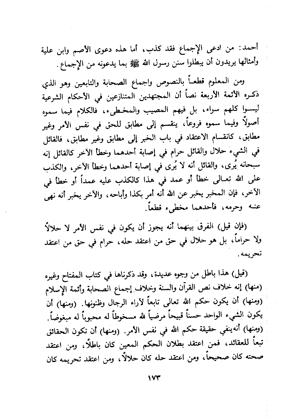 أحمد: من ادعى الإجماع فقد كذب، أما هذه دعوى الأصم وابن علية