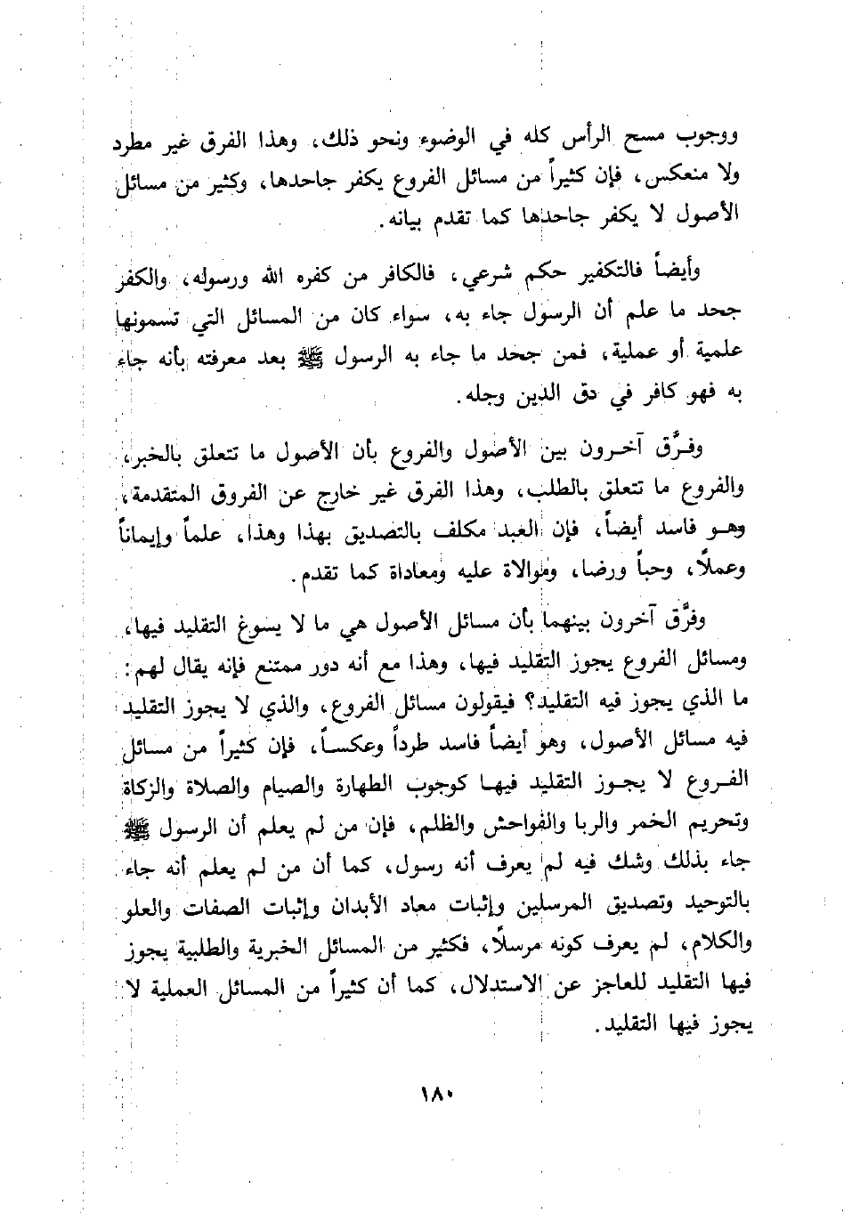 ما الذي يجوز فيه التقليد؟ فيقولون مسائل الفروع، والذي لا يجوز التقليد