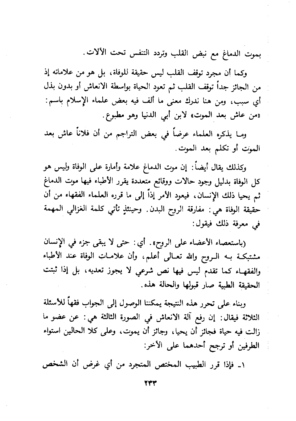 حقيقة الوفاة هي: مفارقة الروح البدن. وحينئذٍ تأتي كلمة الغزالي المهمة