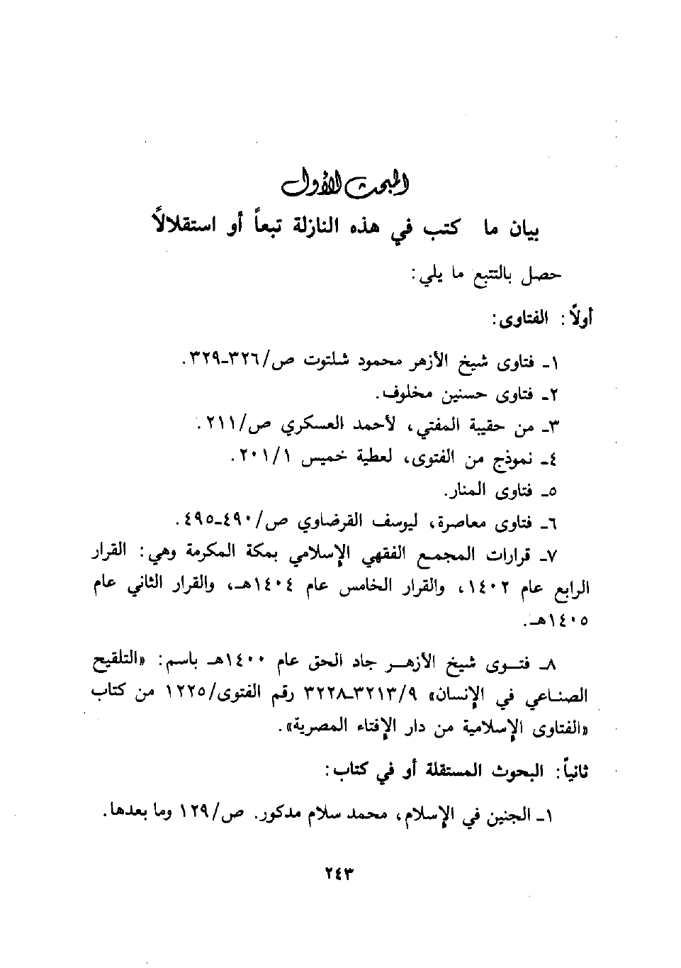8- فتوى شيخ الأزهر جاد الحق عام 1400 هـ باسم: " التلقيح