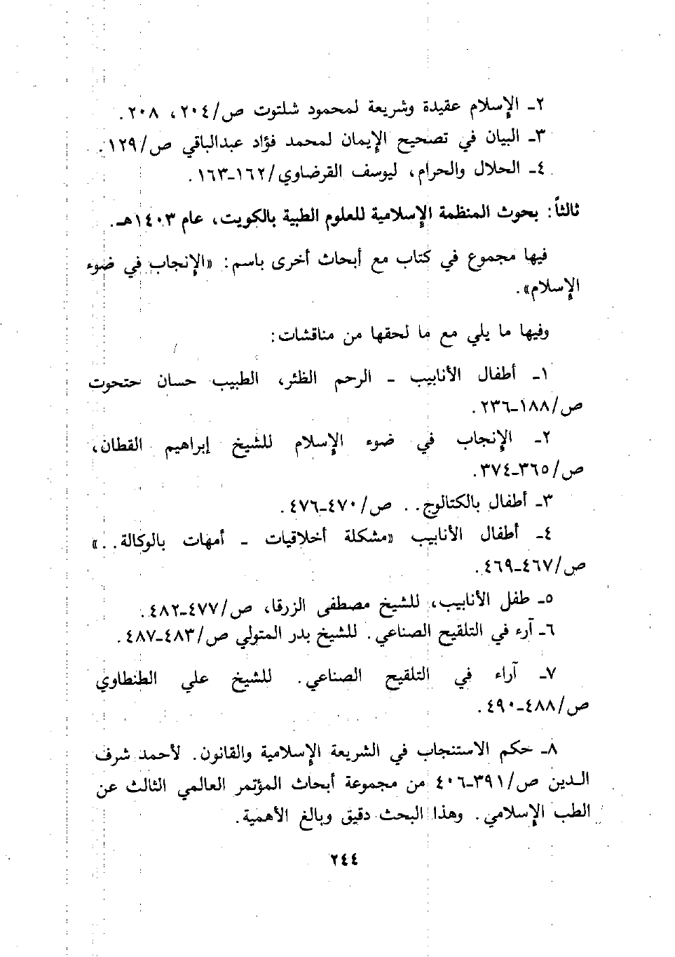 5- طفل الأنابيب، للشيخ مصطفى الزرقا، ص / 477 - 487.