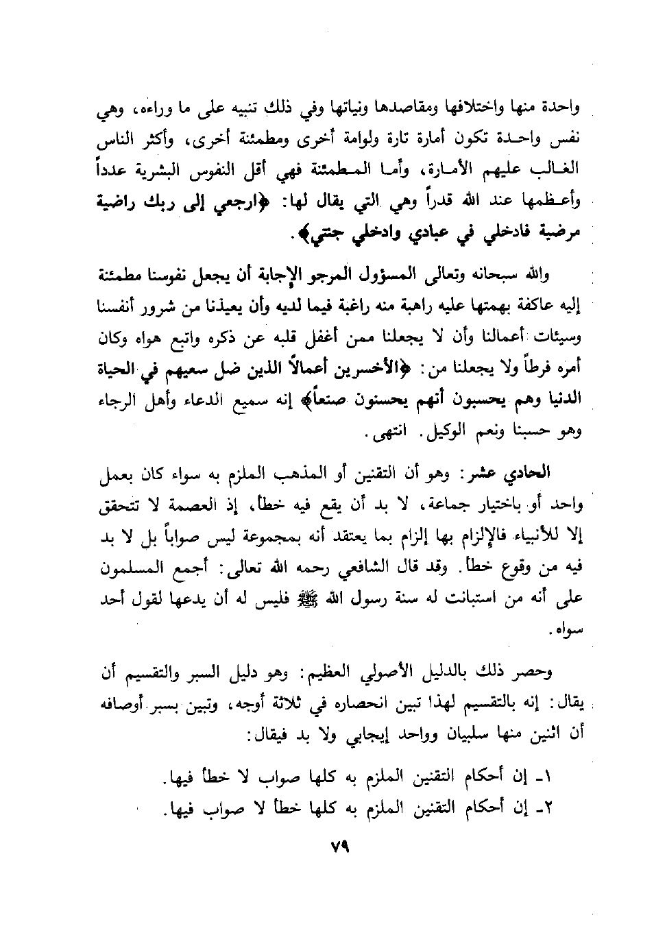 1- إن أحكام التقنين الملزم به كلها صواب لا خطأ فيها.