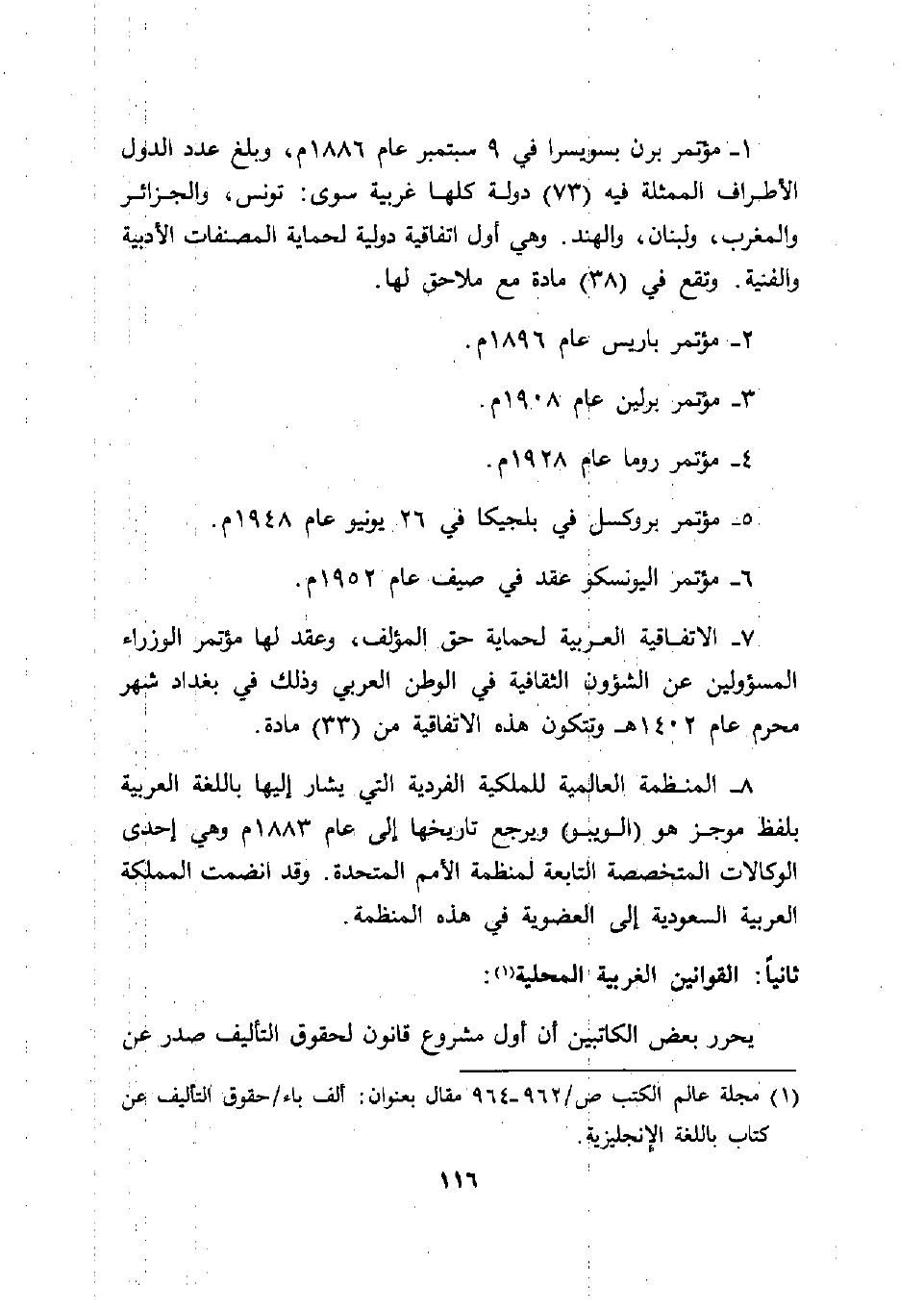 1- مؤتمر برن بسويسرا في 9 سبتمبر عام 1886 م، وبلغ عدد الدول