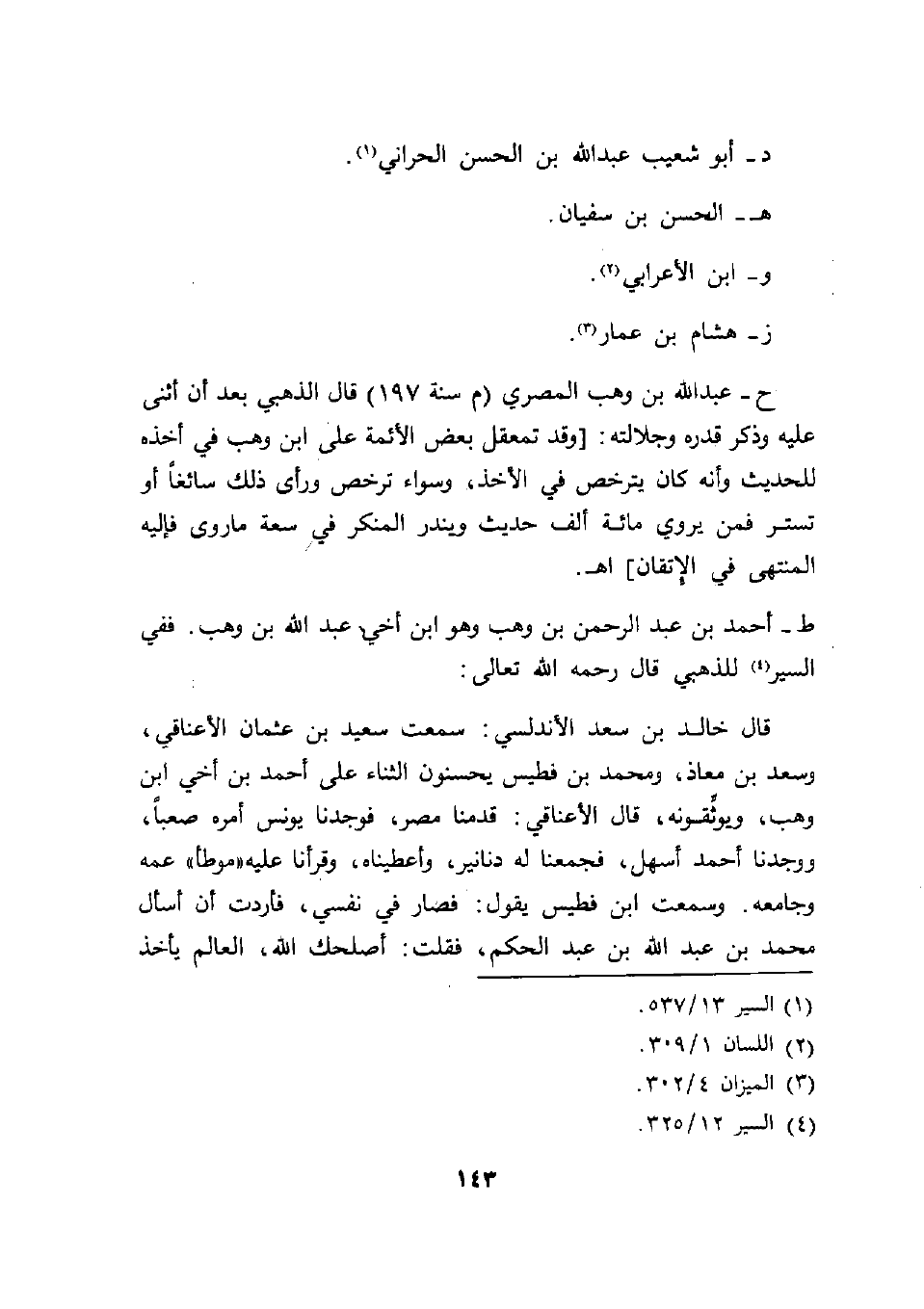 ح - عبد الله بن وهب المصري (م سنة 197) قال الذهبي بعد أن أثنى