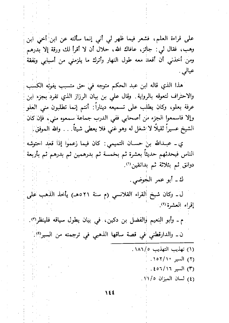 وهب، فقال لي: جائز، عافاك الله، حلال أن لا أقرأ لك ورقة إلا بدرهم