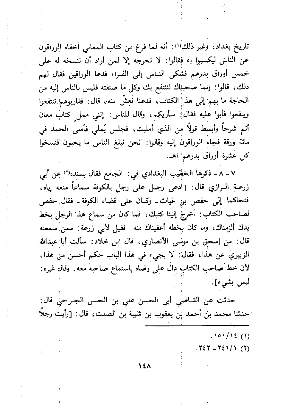 مائة ورقة فجاء الوراقون إليه وقالوا: نحن نبلغ الناس ما يحبون فنسخوا