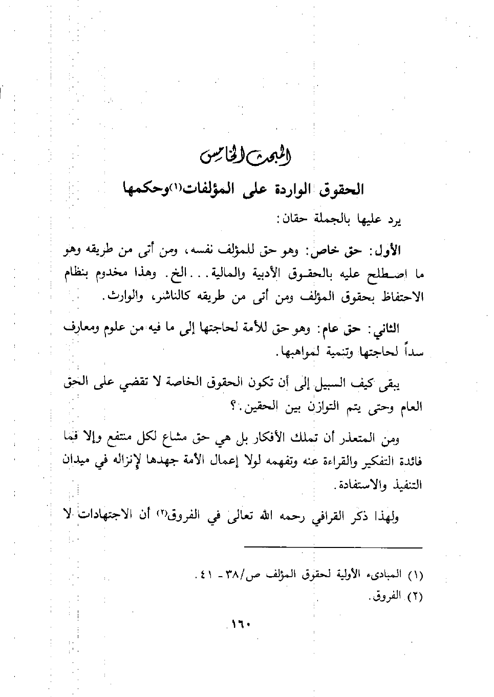 (1) المبادئ الأولية لحقوق المؤلف ص / 38 - 41.