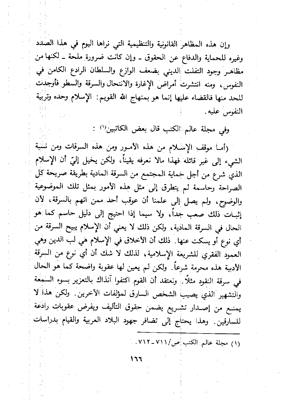 الحال في السرقة المادية، ولكن ذلك لا يعني أن الإسلام يبيح السرقة من