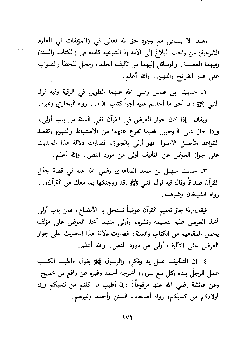 4- إن التأليف عمل يد وفكر، والرسول صَلَّى اللَّهُ عَلَيْهِ وَسَلَّمَ يقول: " أطيب الكسب