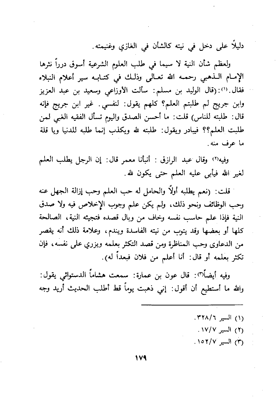 ولعظم شأن النية لا سيما في طلب العلوم الشرعية أسوق درراً نثرها