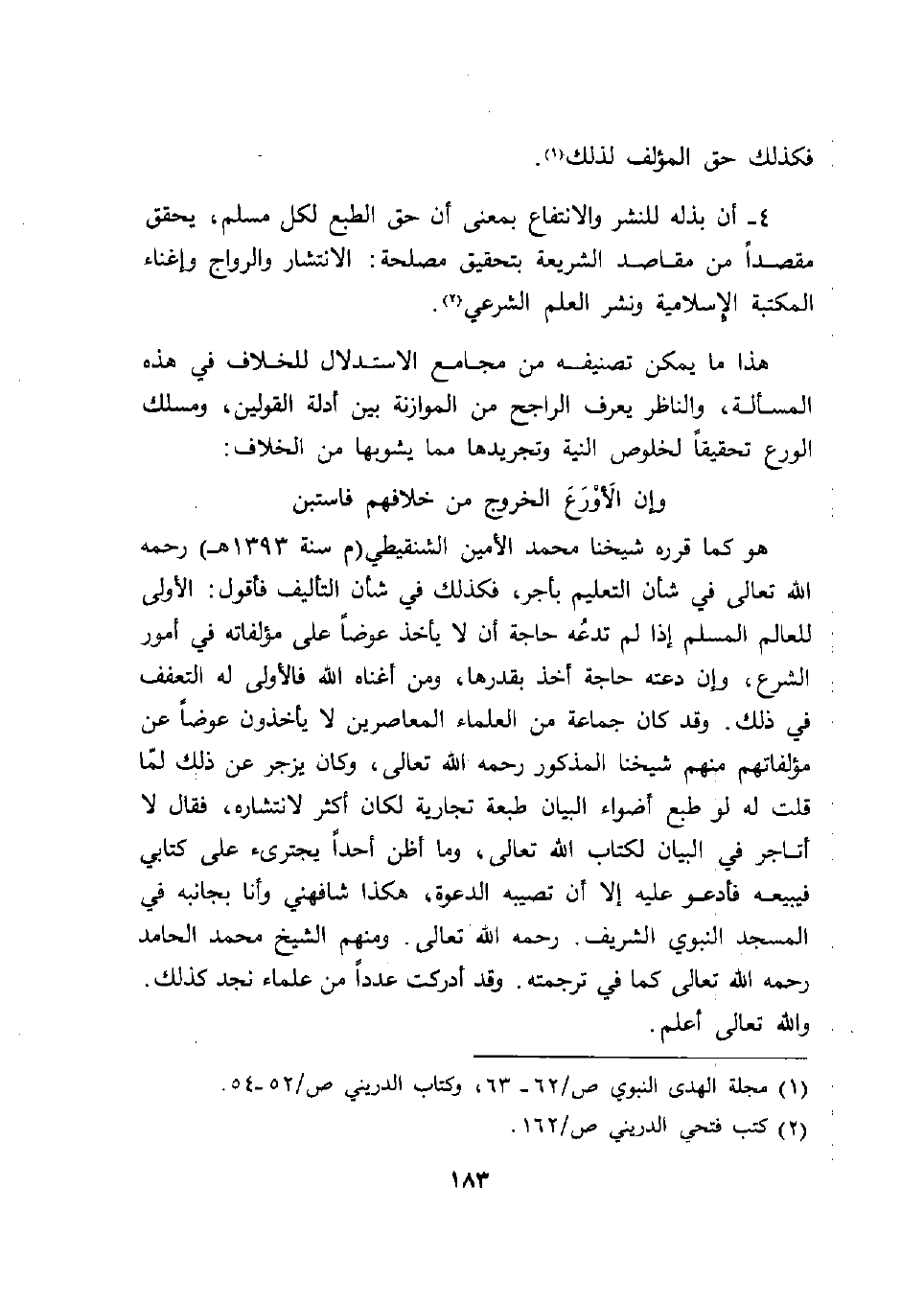 للعالم المسلم إذا لم تدعُه حاجة أن لا يأخذ عوضاً على مؤلفاته في أمور