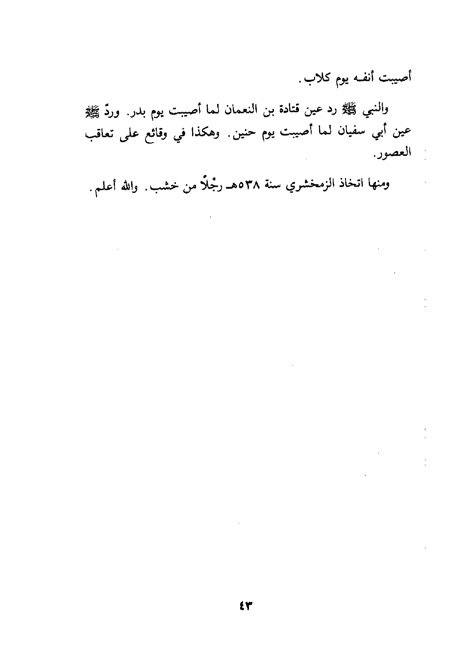 عين أبي سفيان لما أصيبت يوم حنين. وهكذا في وقائع على تعاقب