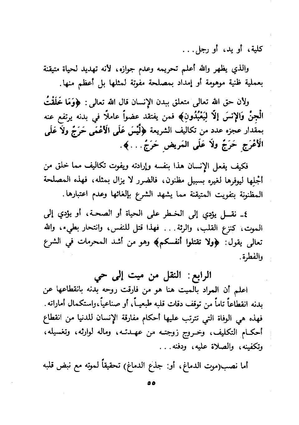 الجِنَّ وَالإِنْسَ إِلَّا لِيَعْبُدُونِ} فمن يفتقد عضواً عاملاً في بدنه يرتفع عنه
