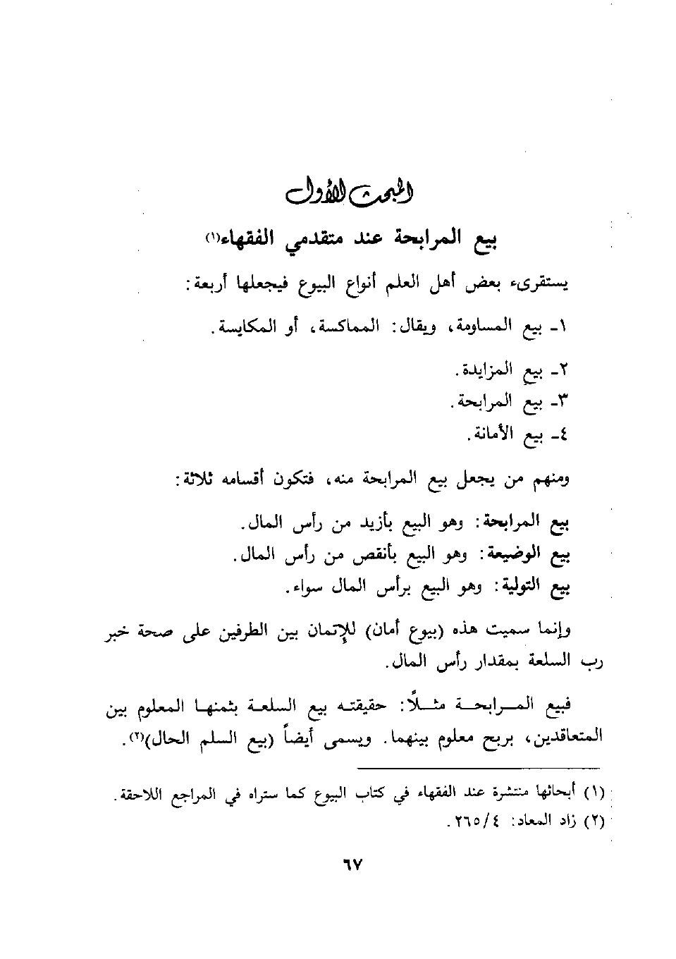 (1) أبحاثها منتشرة عند الفقهاء في كتاب البيوع كما ستراه في المراجع اللاحقة.